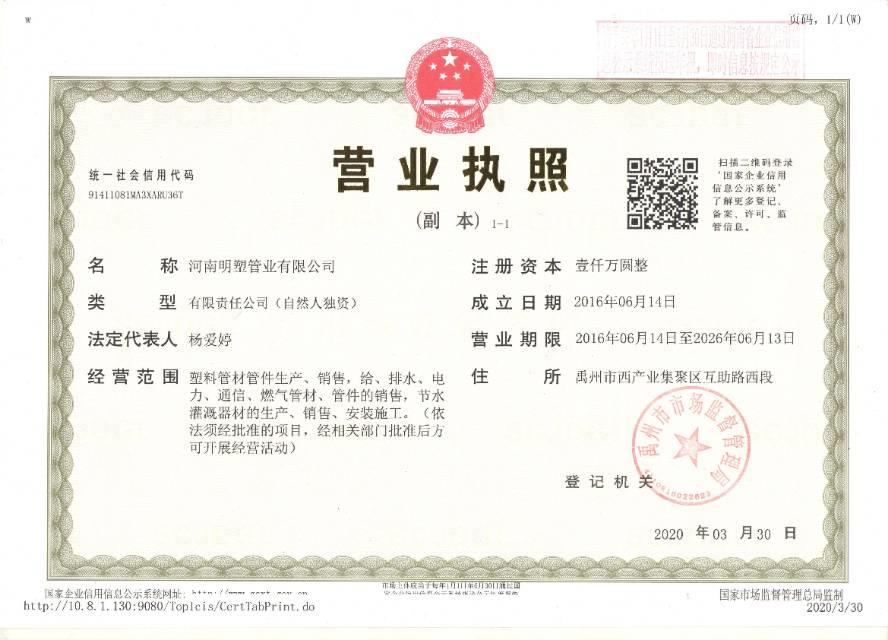 河南明塑管业有限公司坐落于中国禹州市--因大禹而出名,交通十分便利。 绿色、健康、环保是我们的初心,也是我们一直坚持前行的灯塔。 厂里有标准化生产厂房,有PP超静音、PPR、PE、PE-RT、PB、PVC等生产线。 2020年年生产能力8032万吨,当然有您的加入会多的多。