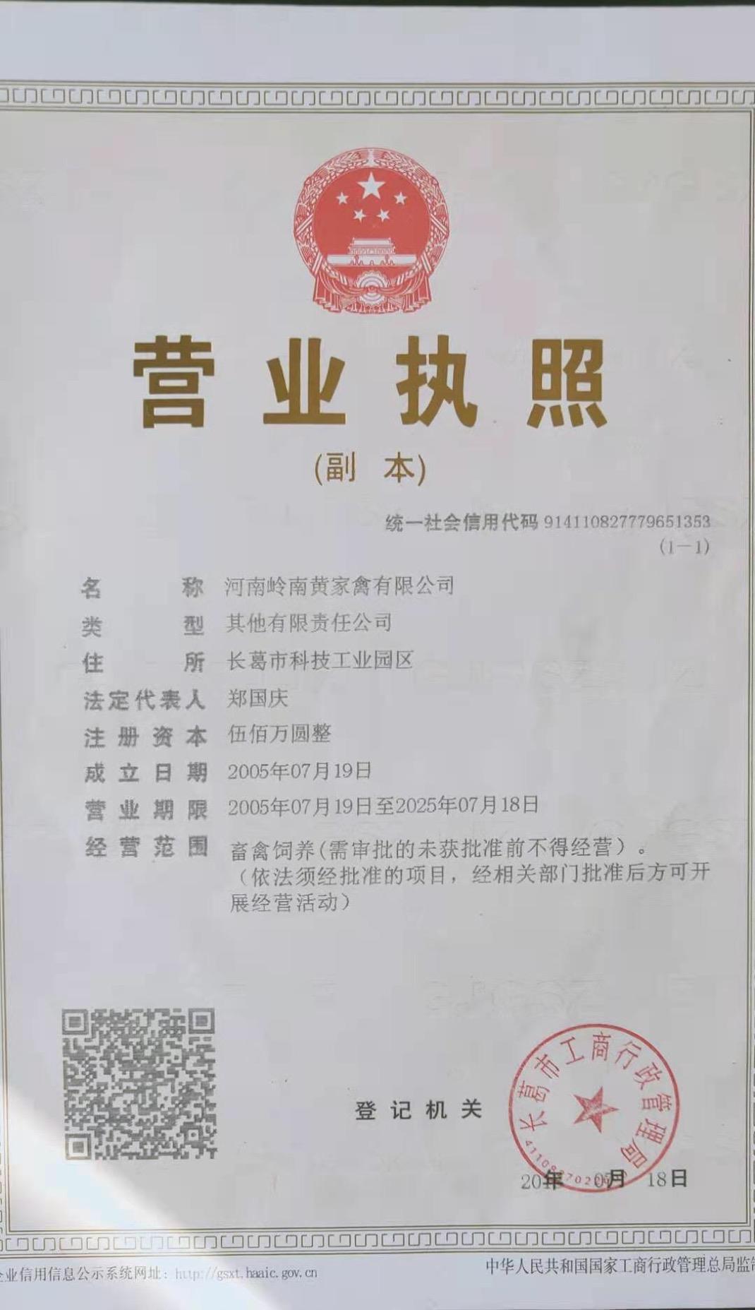 河南岭南黄家禽有限公司