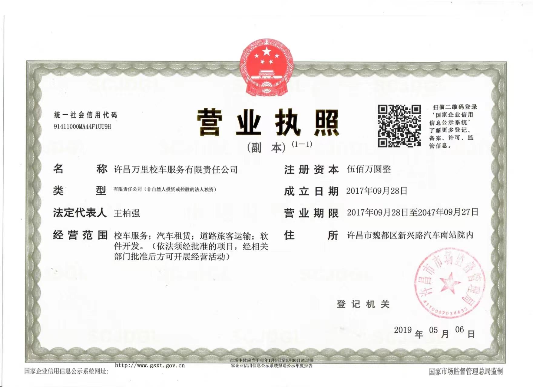 许昌万里校车服务有限责任公司成立于2017年09月28日,经营范围:校车服务,汽车租赁,道路旅客运输等.